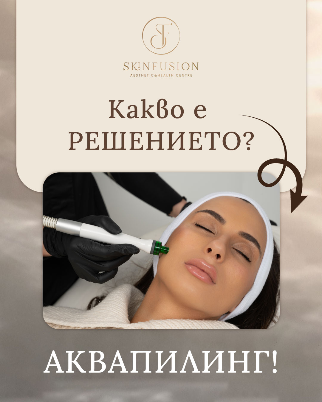 Само Аква пилинг (45 мин) - 40€ или Аква пилинг + ултразвук + радиочестотен лифтинг (60 мин.) - 50€ >> 45€ до 25.03.26 г.